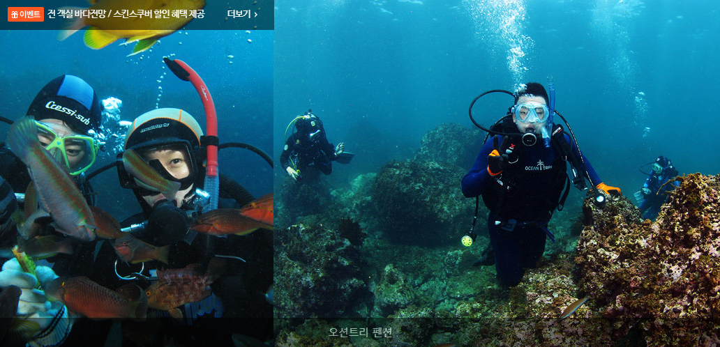 제주 오션트리 펜션에서 숙박도 하시고, 스킨스쿠버 교육받고 체험할인도 받으셔서 즐거운 제주여행 하세요.