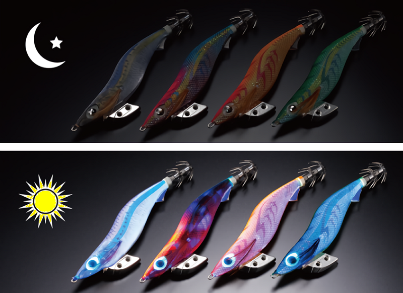 조류 색상에 따라 최적의 자외선 발광 아오리 이카에 에기의 존재를 어필!