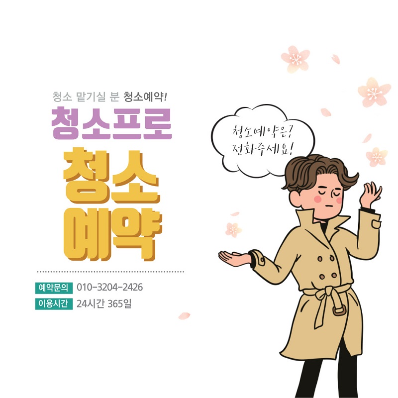 청소프로 고객센터 (010-3204-2426) 휴대폰에 전화하셔서 상세하게 상담하신 후 청소가격 확정받으시고,