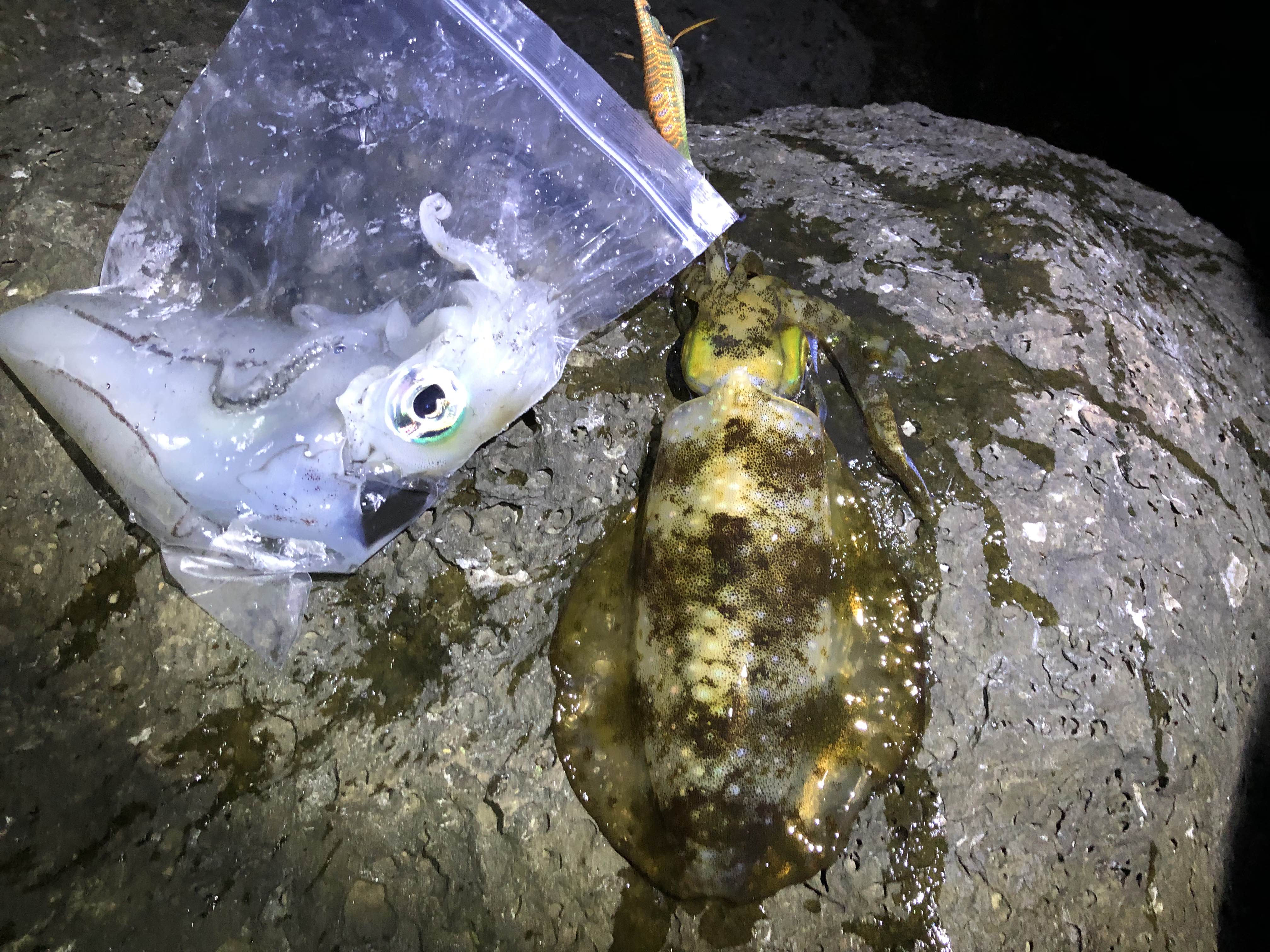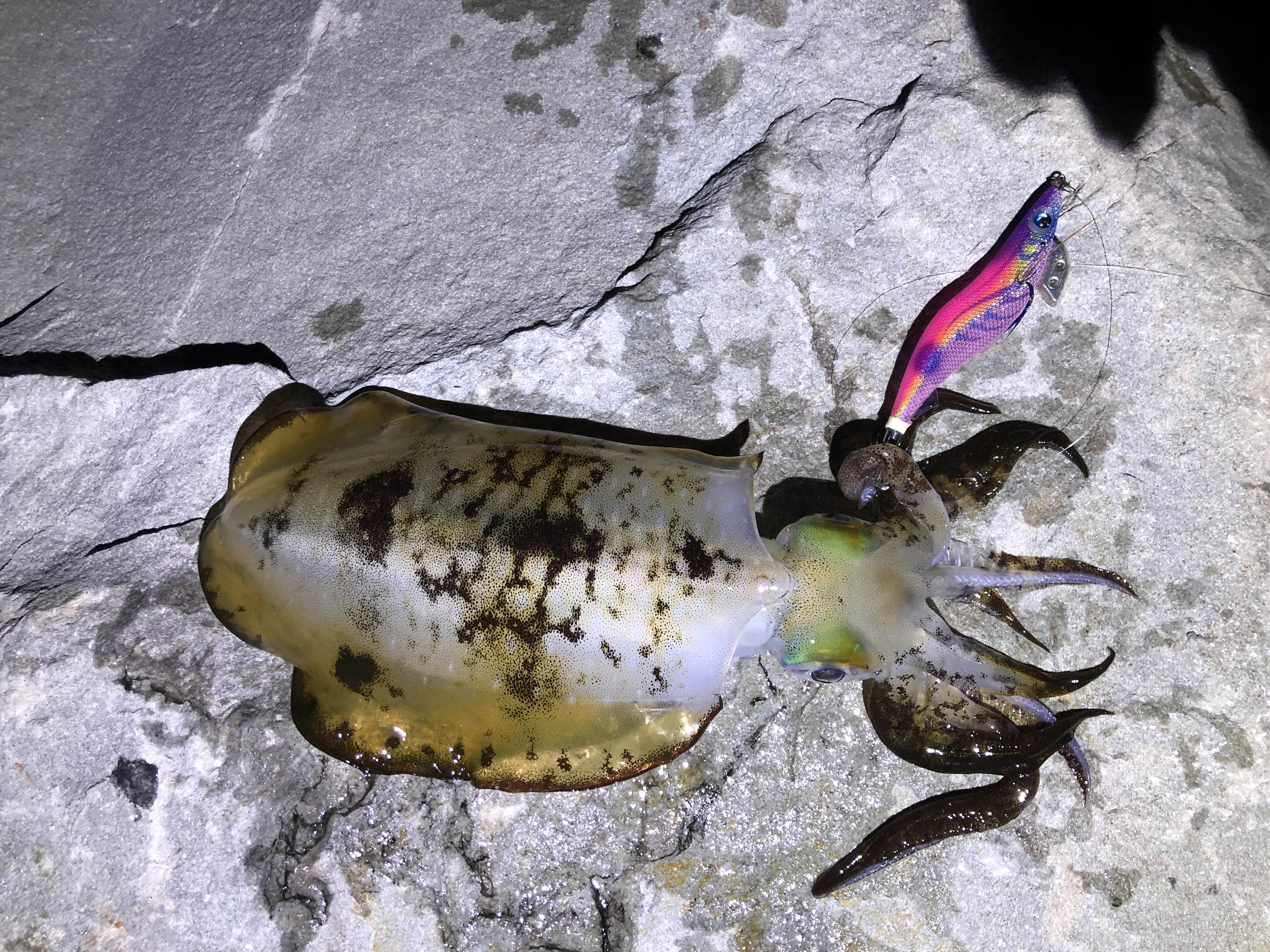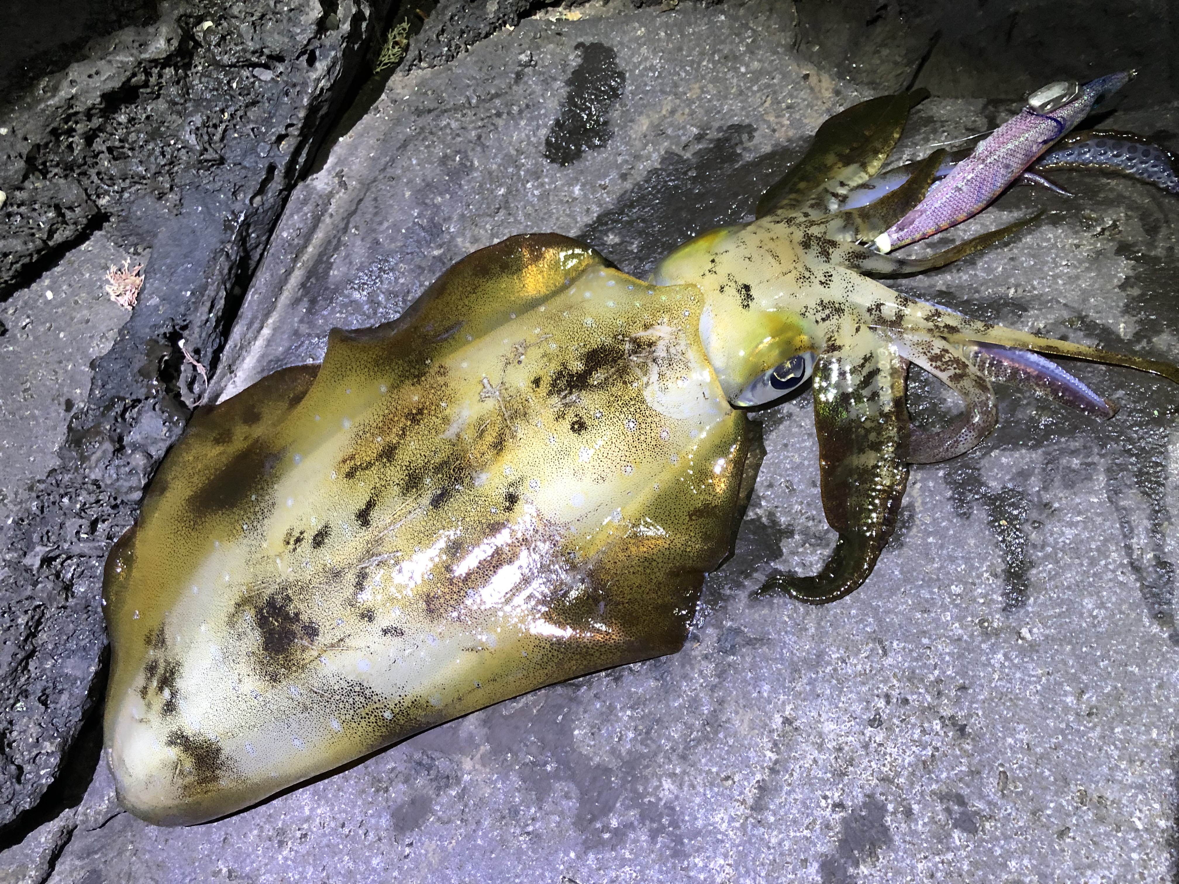 1곳의 포인트에서~ 기본 최소 1~3마리의 무늬오징어를 잡아 올리고 있습니다.