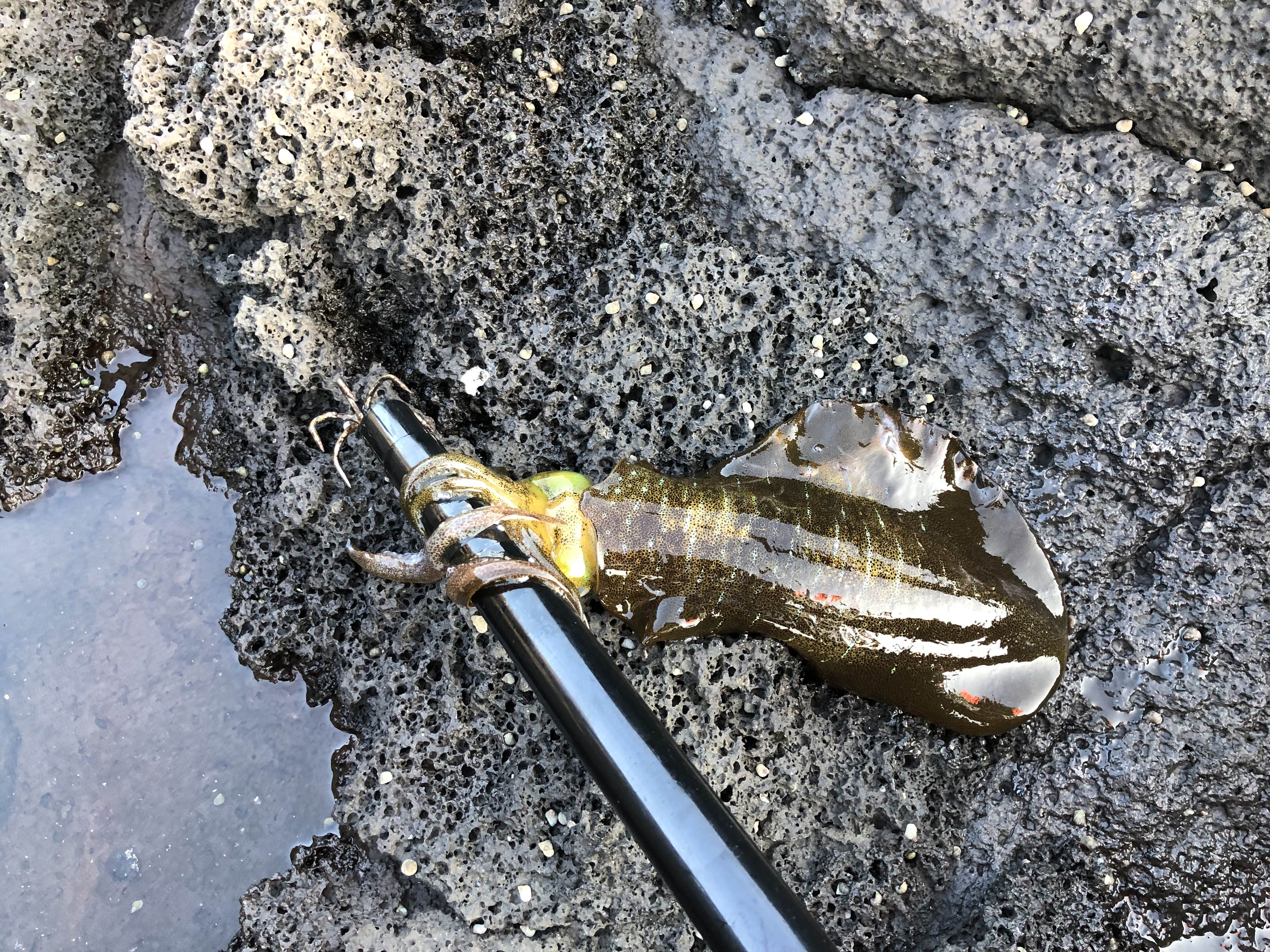 발판이 편한 국민포인트 즉, 포구에서는 무늬오징어가 잘 잡히지 않고, 제주도 에깅꾼들은 포구에서 무늬를 잡지않고, 대부분이 노출되지 않는 갯바위에서 잡는다는 것 인지하시면 좋습니다.