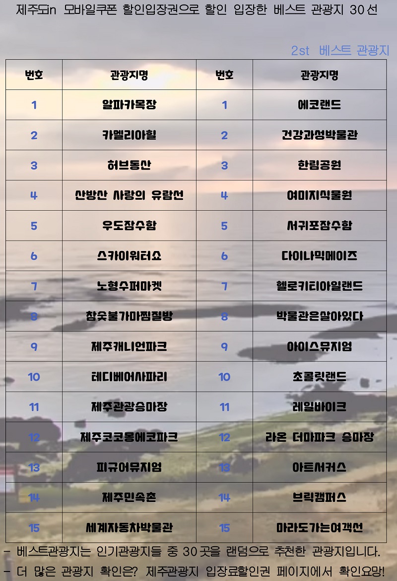 ※ 제주도 관광지 입장료 할인권 신청하러 바로가기 → [ 이곳클릭 ] ※