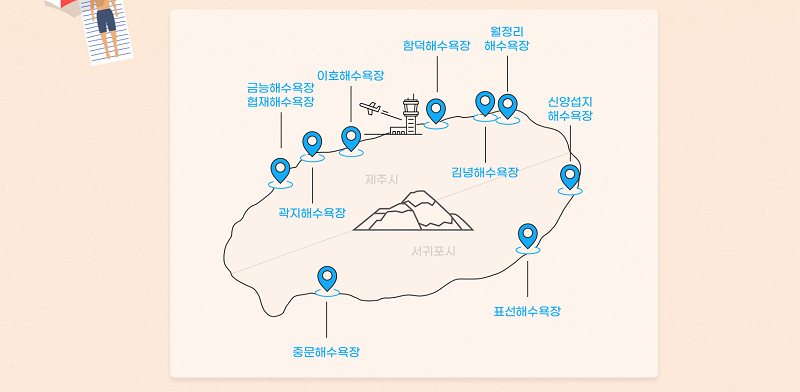 제주시권 및 서귀포권역의 해수욕장을 확인하시고,