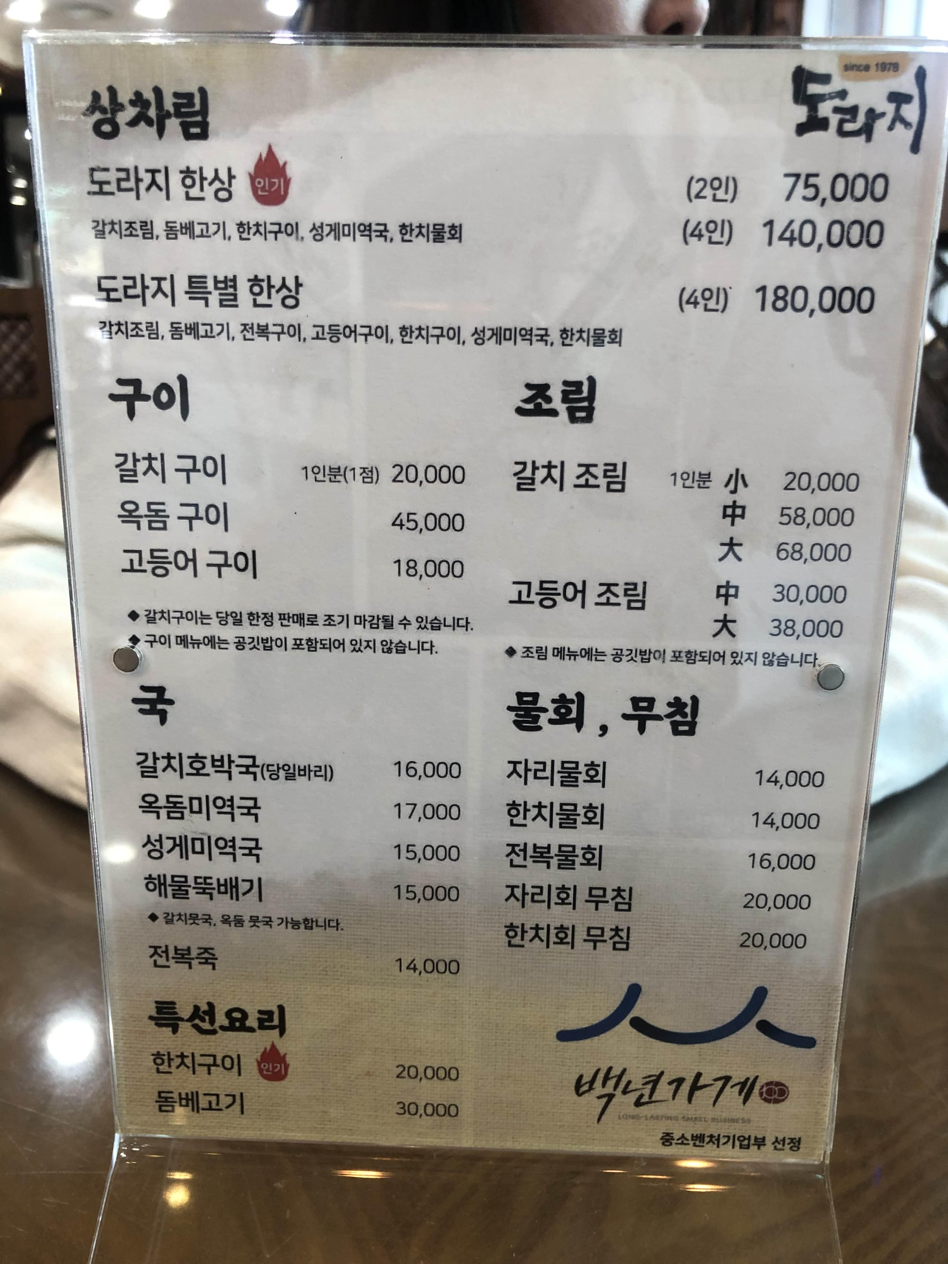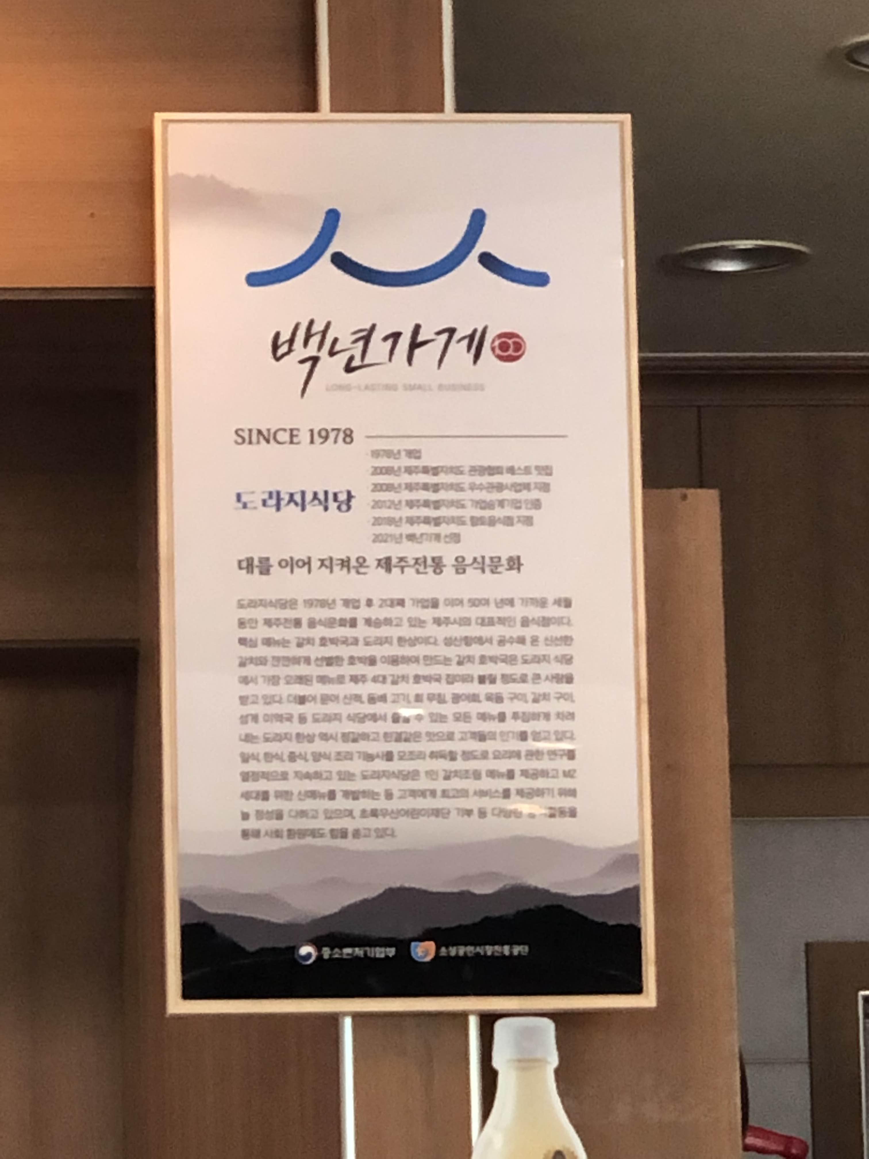 제주시 맛집 도라지식당 메뉴판 입니다.
