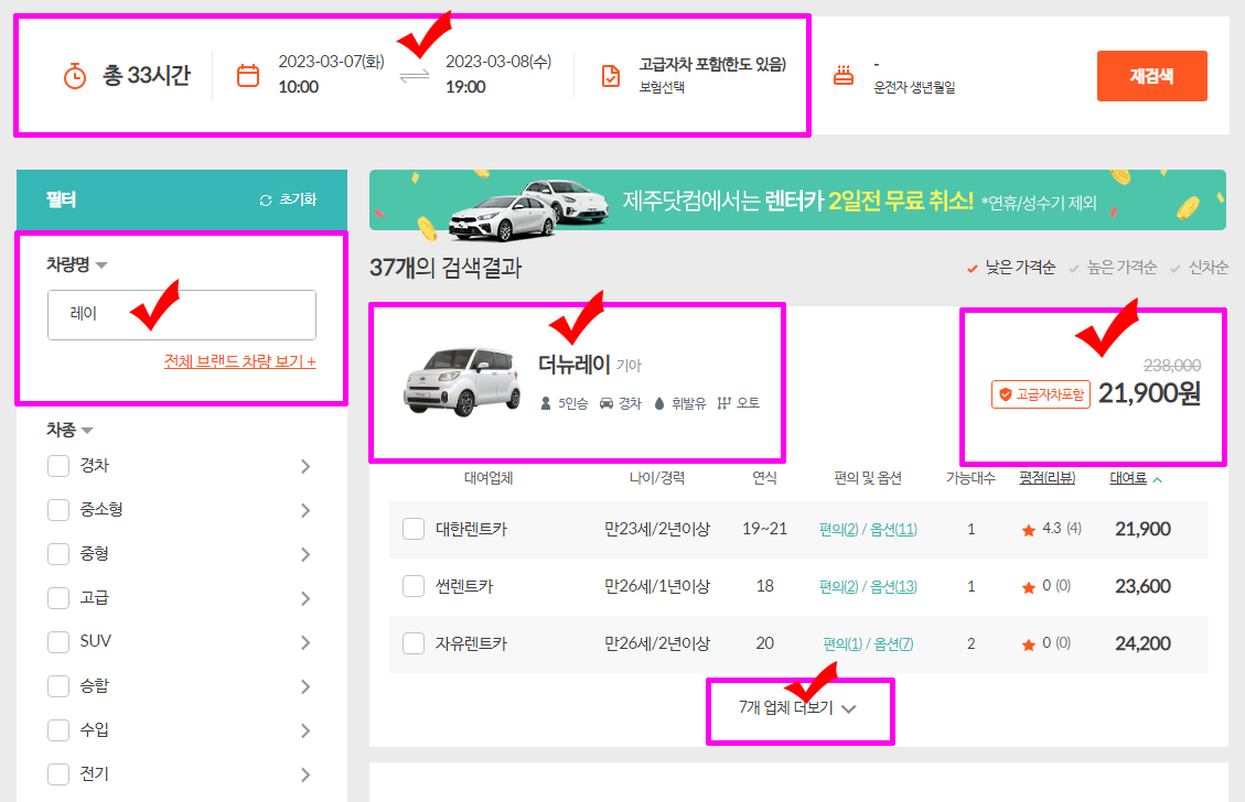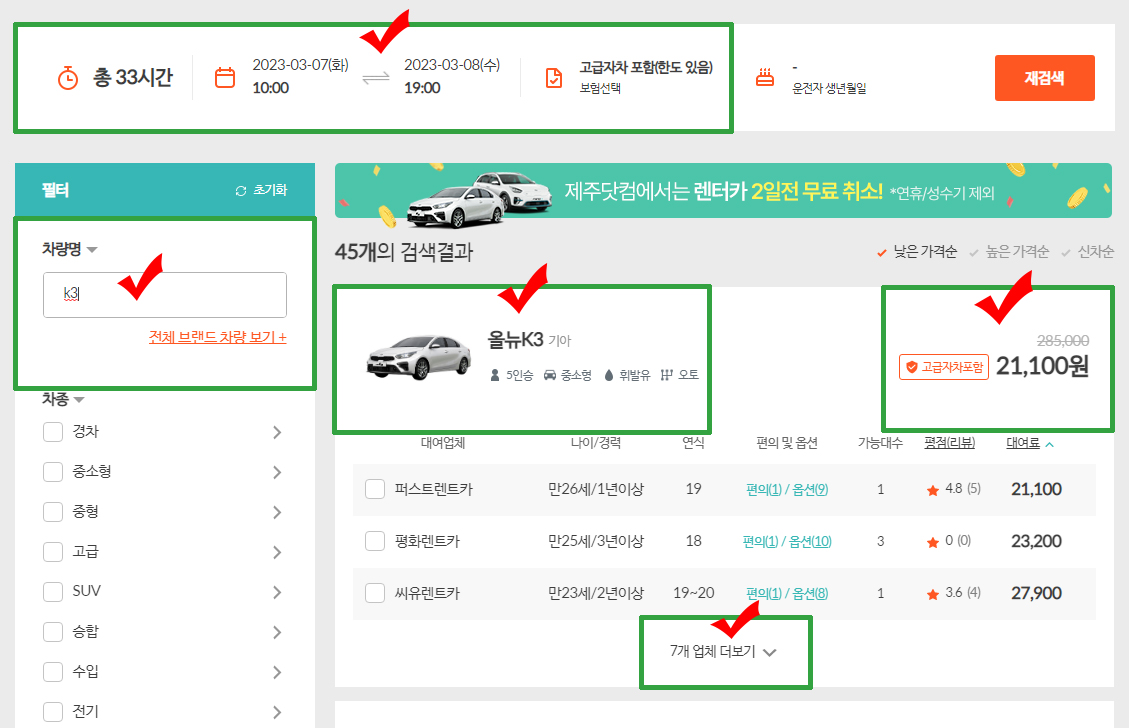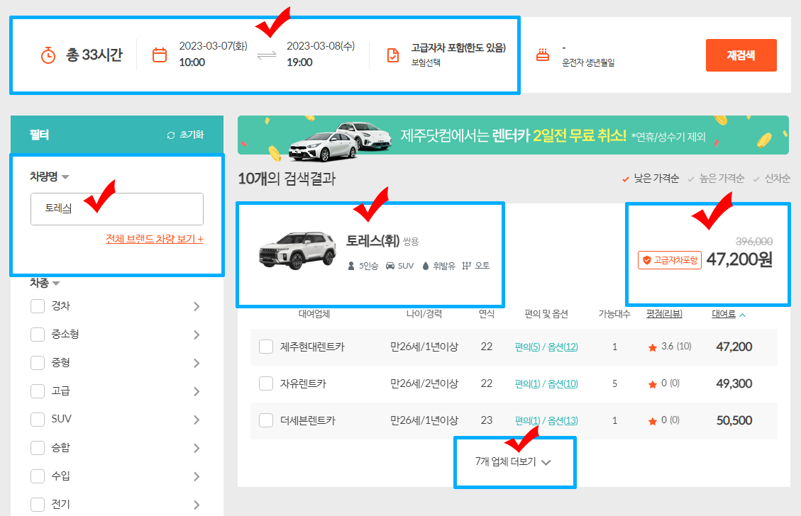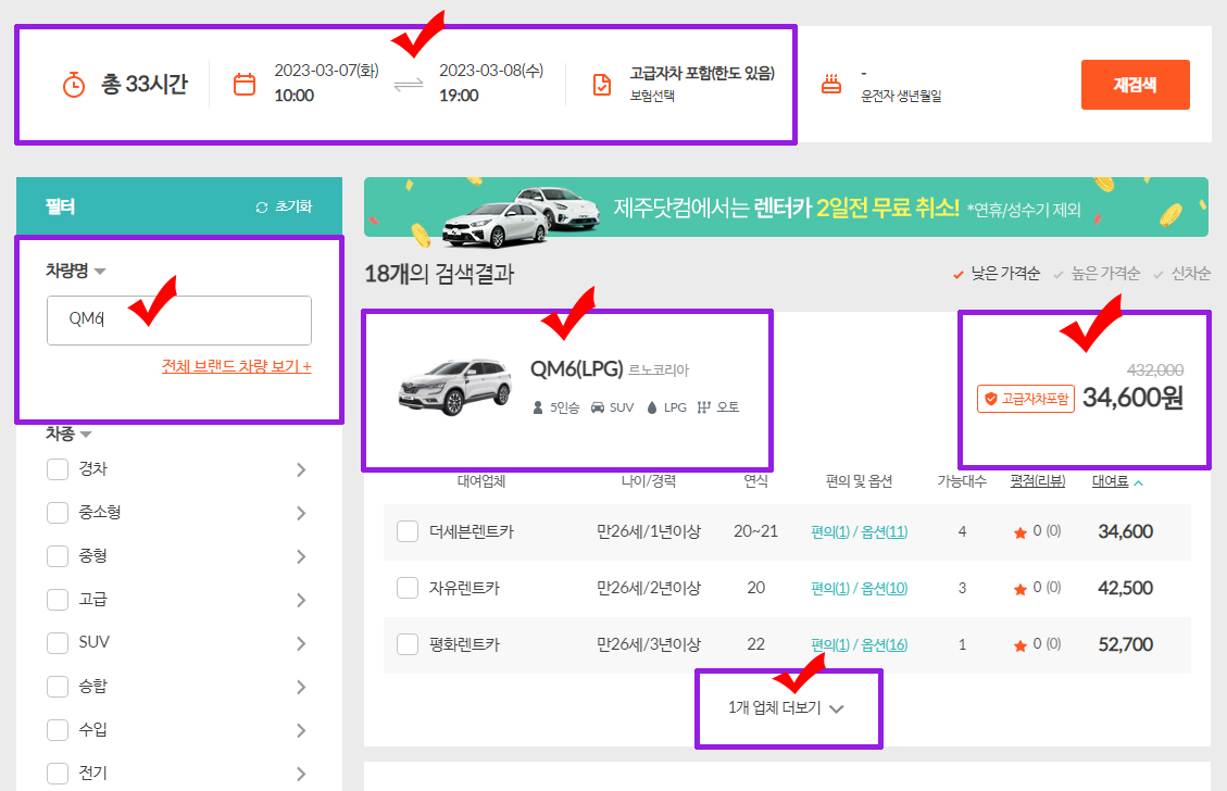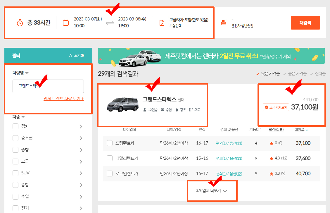 가장 싸고 저렴한 렌트카를 검색하시고,