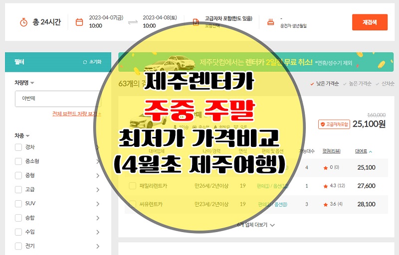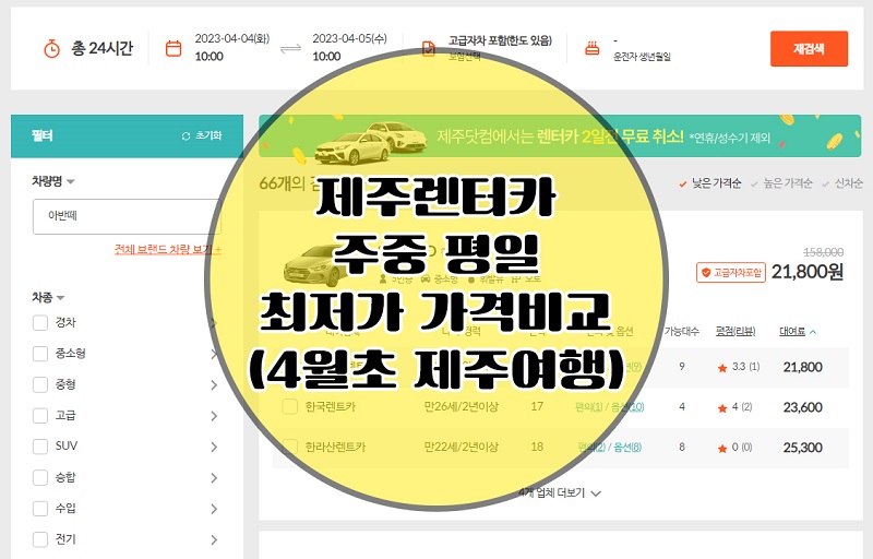 4월 제주도 여행을 위하여, 제주도 렌터카 가격비교 해봤습니다.