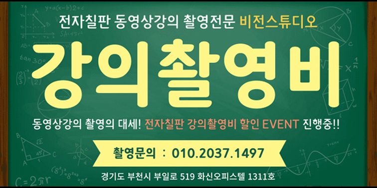 ※ 비전스튜디오 전자칠판 강의촬영비 이벤트 보기 : [ 여기클릭 ]