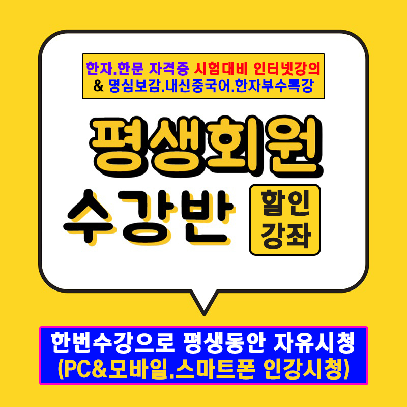 * 한자능력검정시험 1급~8급 종합반강좌(1년수강반) 교재무료제공 보러가기 → [ 이곳클릭 ] *