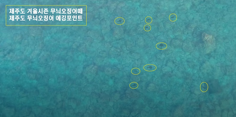 유튜브에 공개된 제주도 무늬오징어 낚시 에깅포인트 드론영상인데, 영상을 보시면~