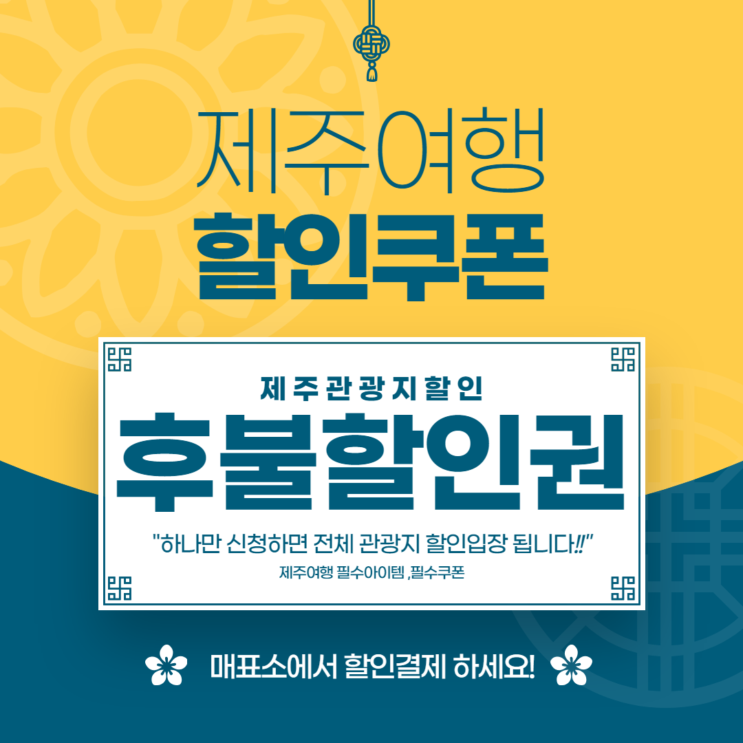 ※ 제주관광지 입장료 할인권(할인쿠폰) 신청하기 : https://jumh.vpass.co.kr/www/