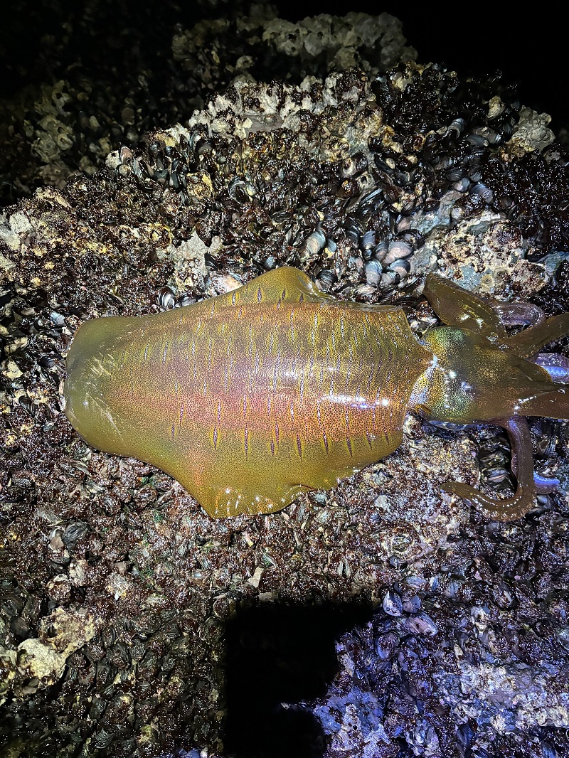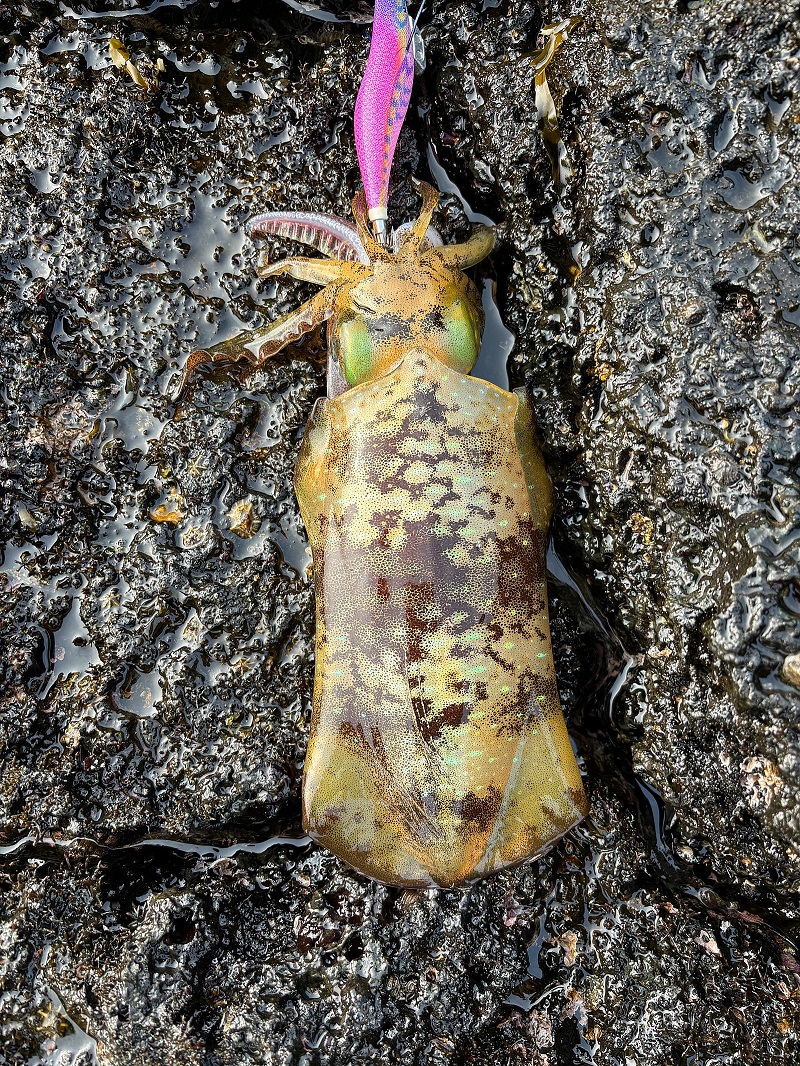 출조한지 10여분만에 운좋게도 사이즈 괜찮은 무늬오징어 한 수 히트했어요.