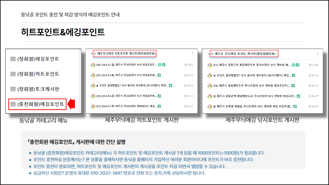 2.등낚골 홈페이지 → (충전회원)에깅포인트 게시판을 열람할 수 있습니다.