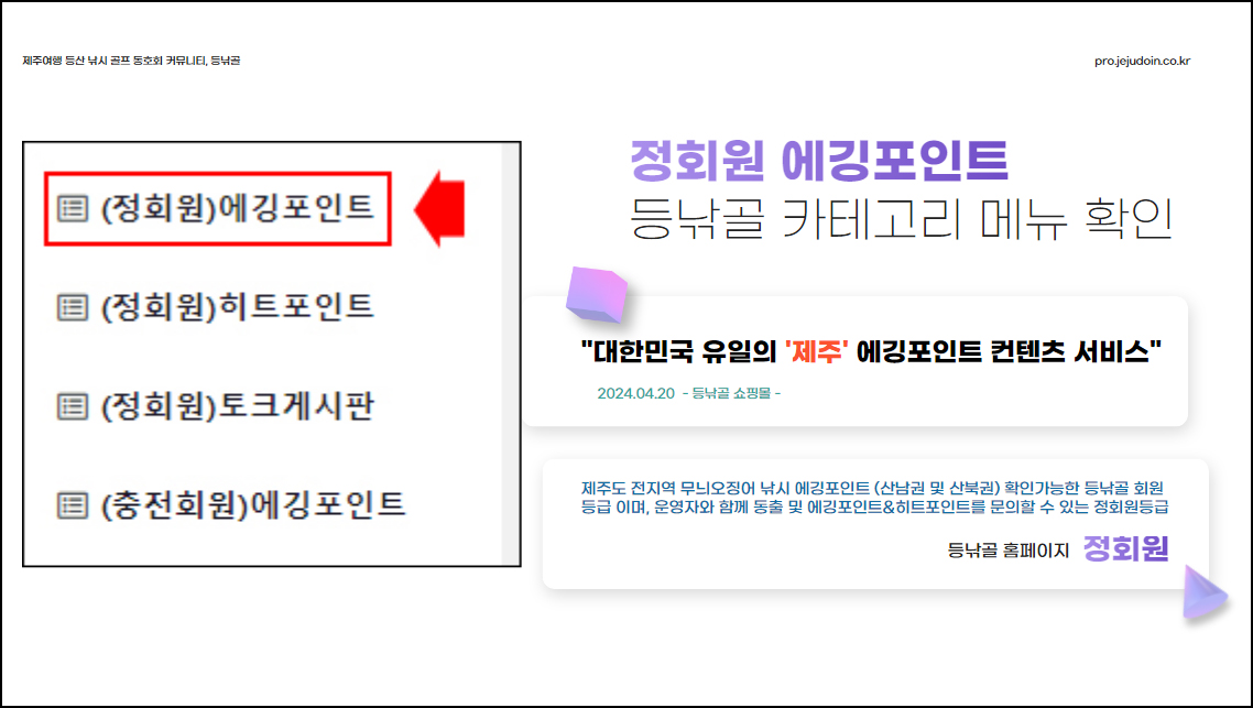 1.등낚골 홈페이지 → (정회원)에깅포인트 게시판을 열람할 수 있습니다.