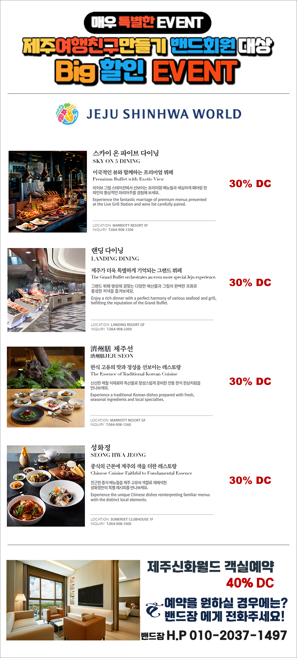 제주신화월드 호텔&리조트 객실, 뷔페, 식당 Big 할인이벤트를 이용하세요.