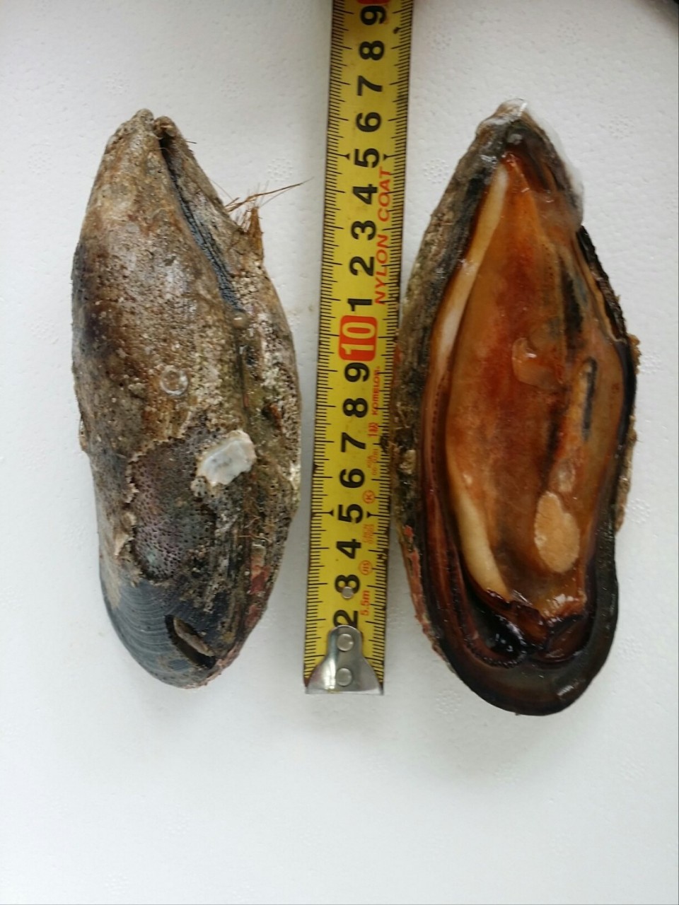 추자 자연산 참홍합(섭) 사이즈를 줄자로 재어봤습니다.
