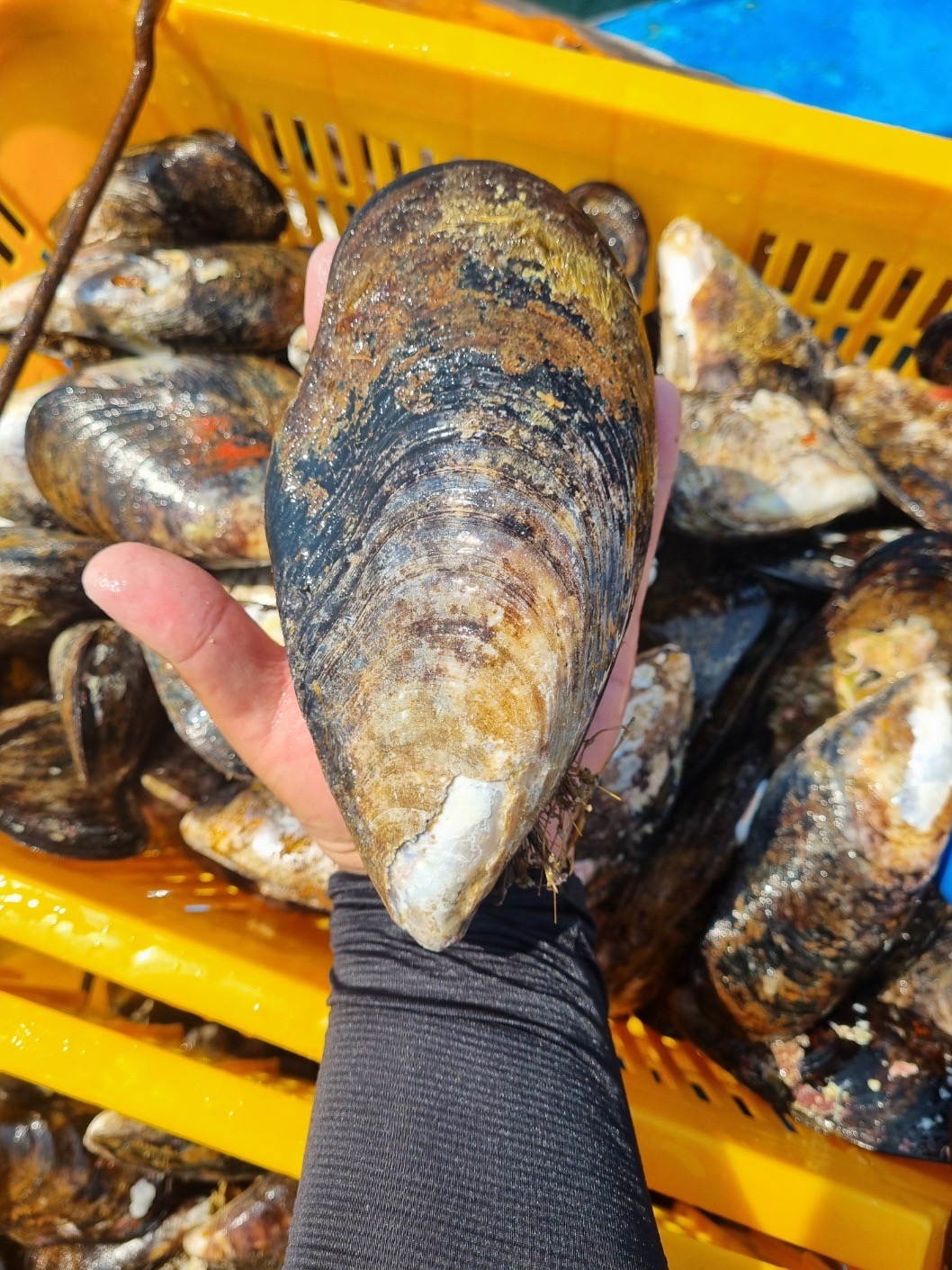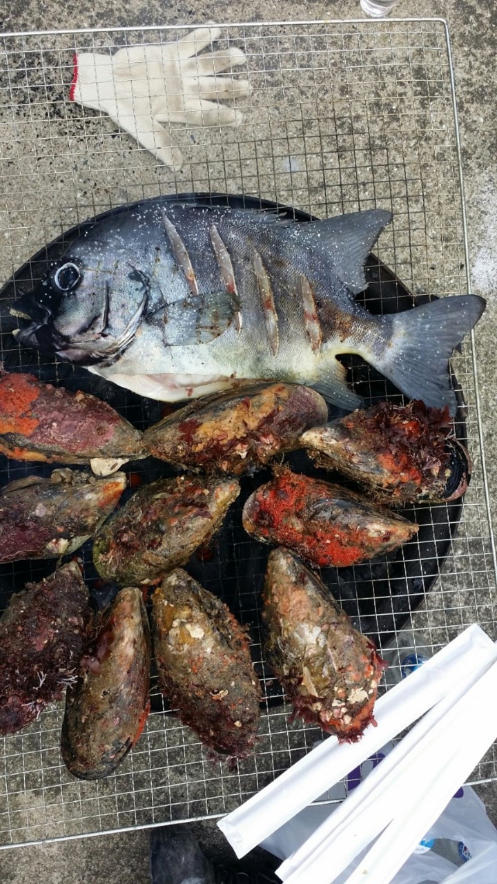 추자도 자연산 참홍합 수중 갯바위에서 자생하고 있는 사진을 볼 수 있네요.