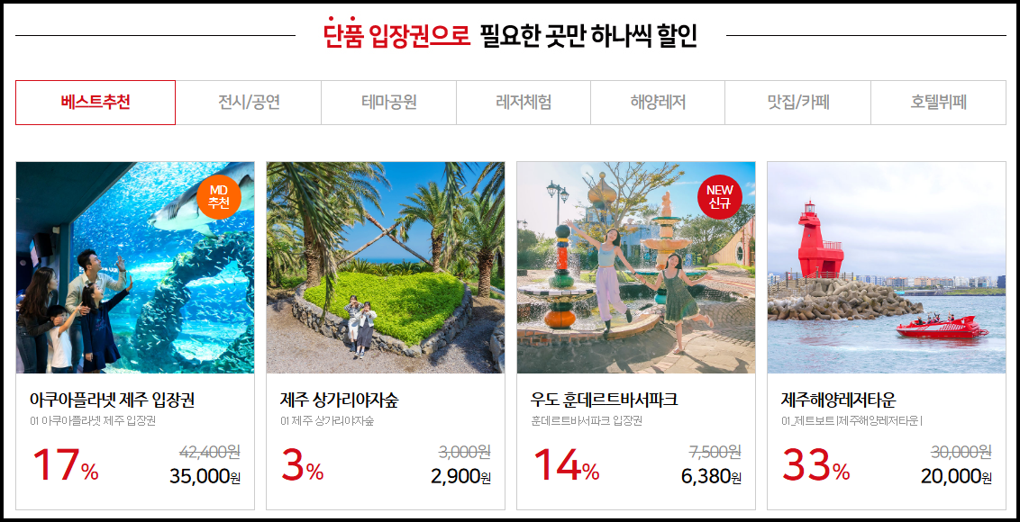 제주여행 출발전에 제주 관광지 입장권 할인구매 하시면 더 편하게 여행 및 관광 하실 수 있습니다.