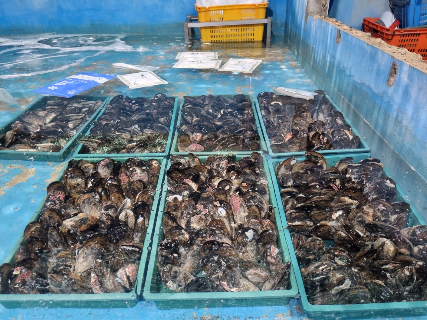 참홍합은? 양식이 안되는 전부 자연산 홍합이며,