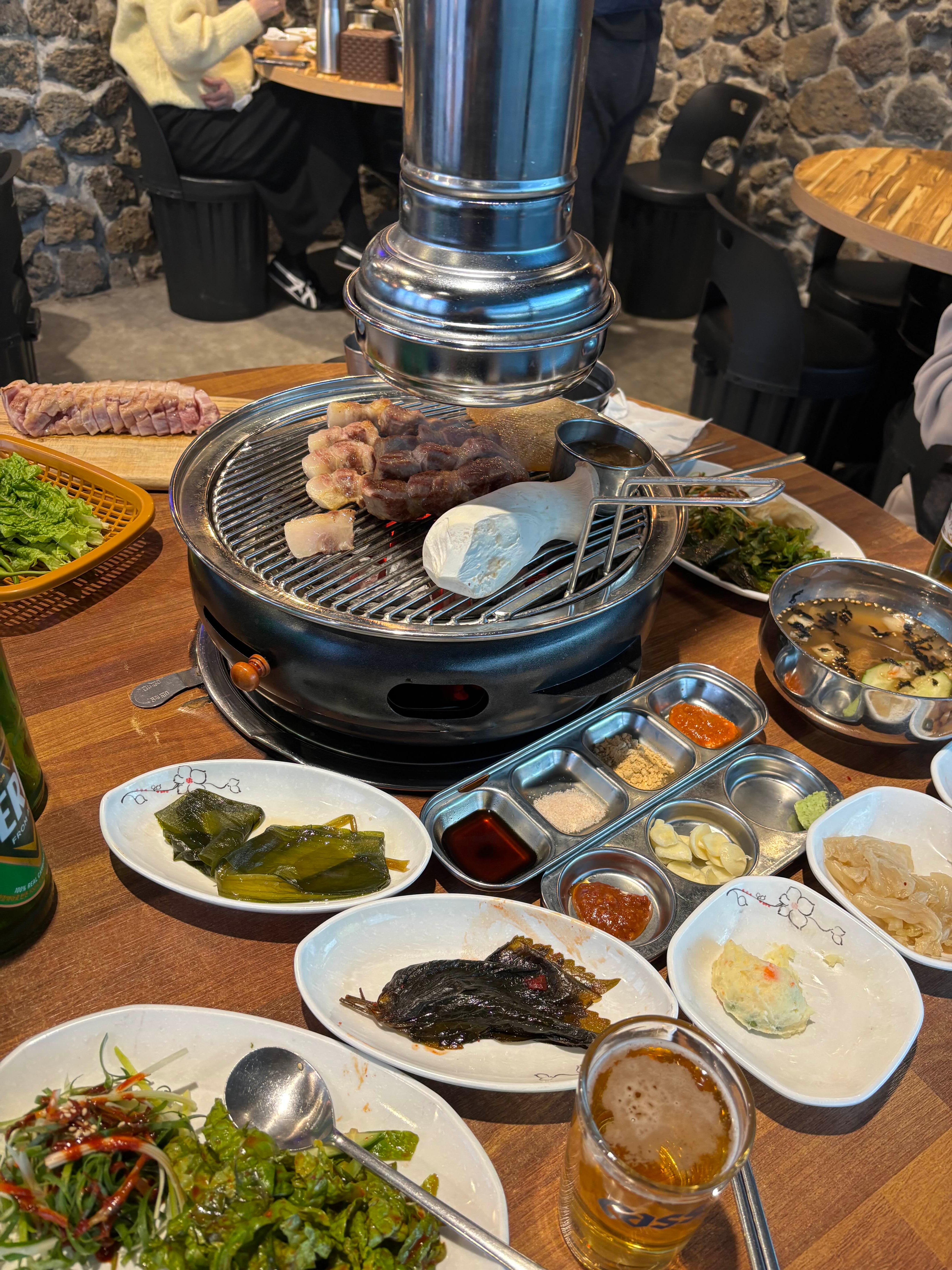 골프라운드 잼나게 마치고 애월 해안도로 돌담위에흑돼지 맛집에서 뒷풀이겸 저녁식사를 맛있게 먹었네요.