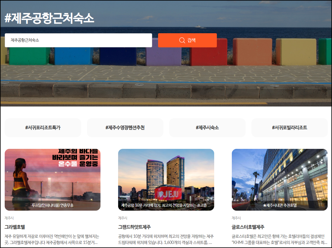 실시간 항공, 숙박, 렌터카, 관광지, 단체/MICE, 패키지 등 제주여행의 모든 것!