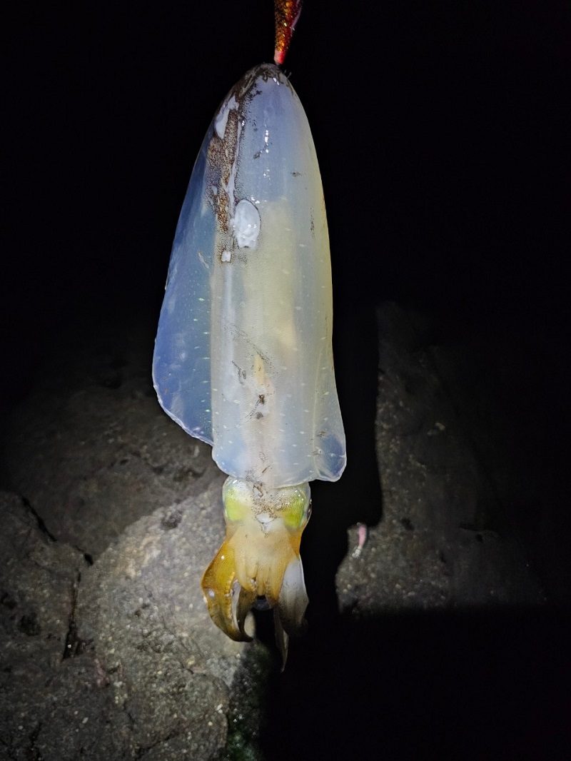 그 동안 너무 춥고 바람이 많이 불었고 수온도 낮아져서 무늬오징어 활성도가 좋지 않았습니다.