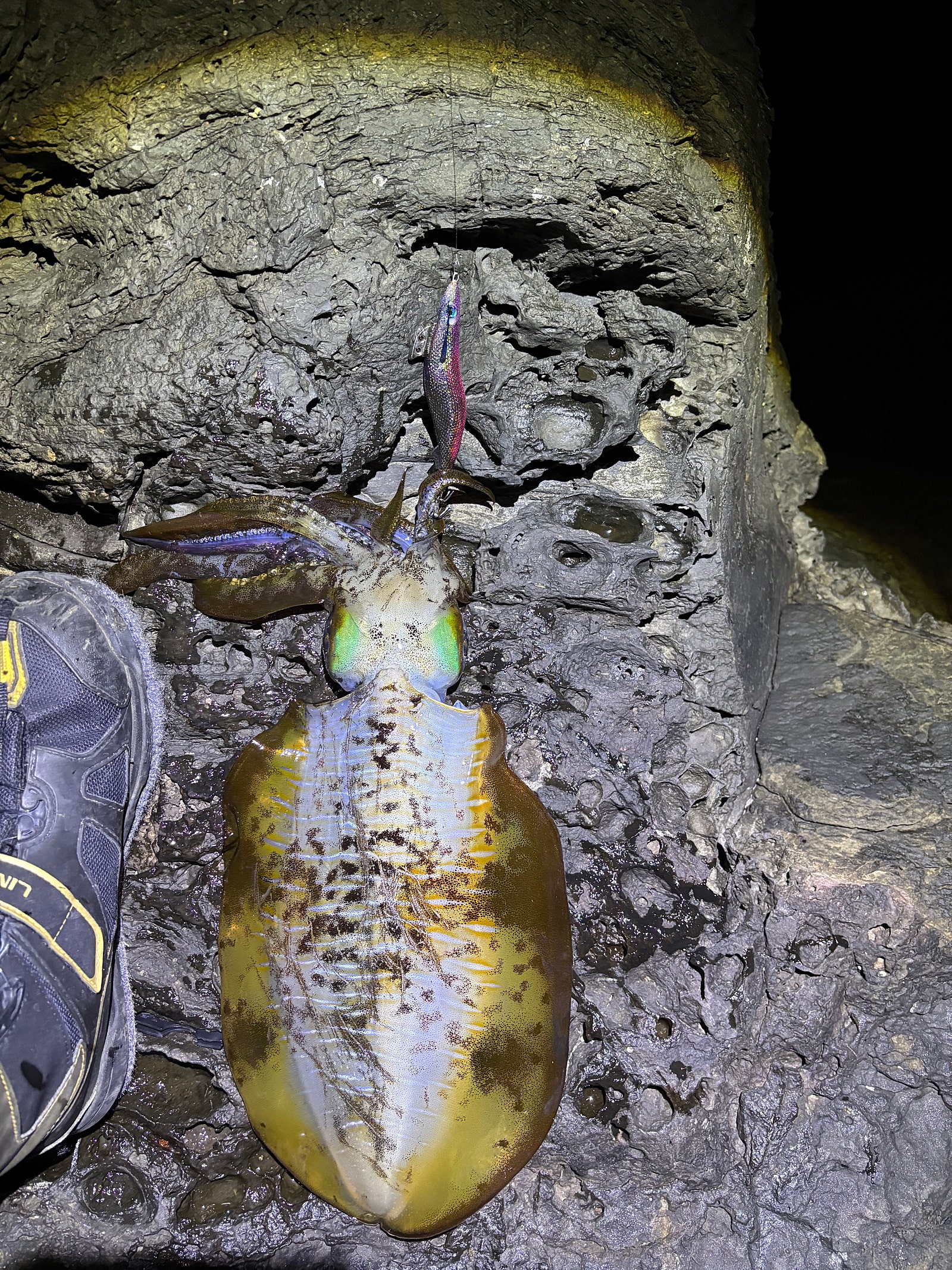 무늬오징어는 조류를 타고 들어왔다가 나가는 회유성 어종이므로 반드시 물이 잘 가는 물때에 출조하시기 바라구요.