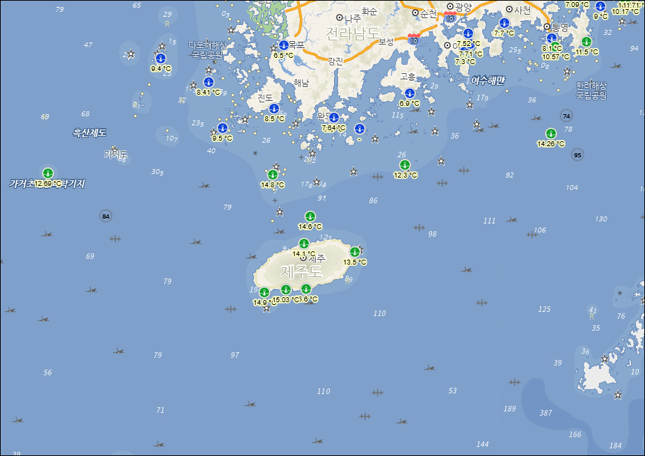 제주도 서귀포 및 제주시(산남권 및 산북권) 낚시포인트 바다현장 날씨 상황을
