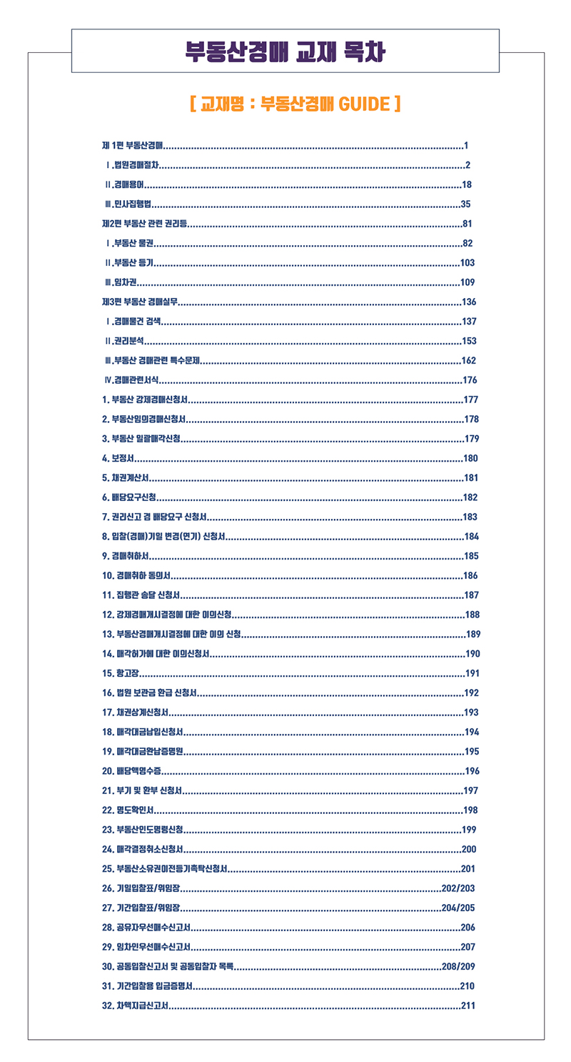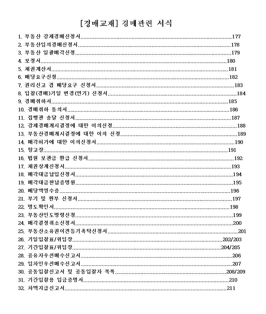 경매교재에 담겨있는 경매관련 서식목차 입니다.