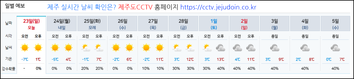 2월 4째주 제주도 날씨가 좋은 편이네요.