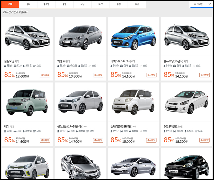 여행하시는 인원에 따라서 좋아하시는 차종에 따라서 실시간 가격비교 하시고,