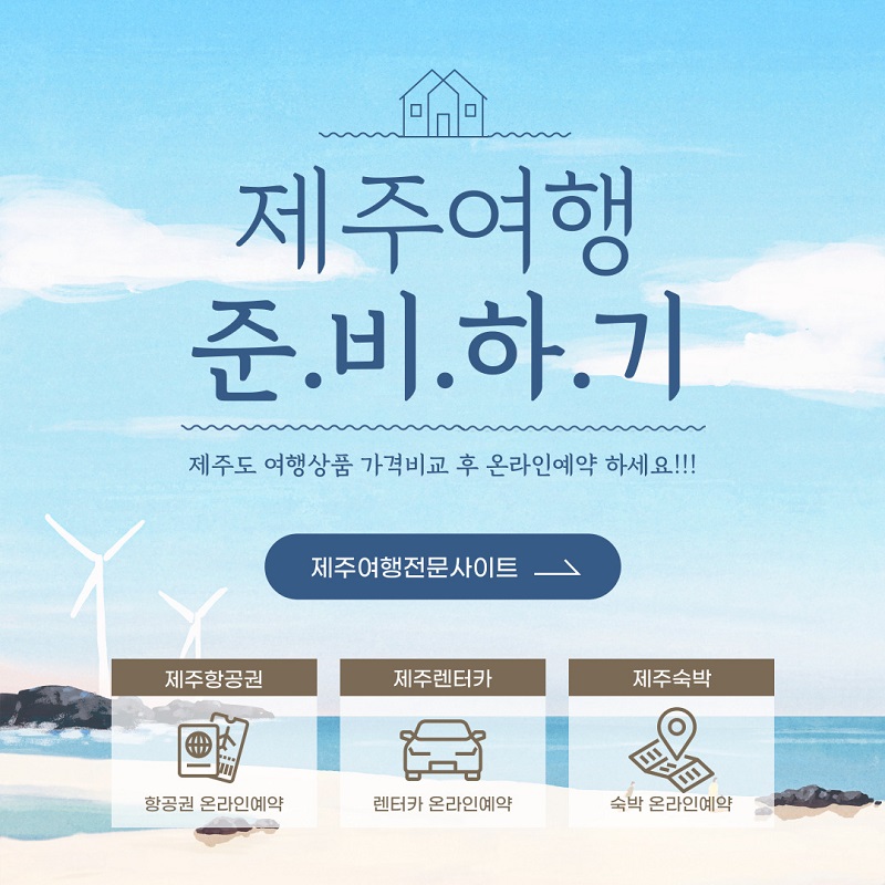 봄철 제주도 여행을 준비하시는 여러분들께 추천해드립니다. 제주도 가족여행 등 자유여행을 준비하시는 분들께서는.. 제주도 여행준비하는 제주여행전문 여행사이트에서... 제주도 여행상품 가격비교 하시고, 맘에드는 여행상품 바로 온라인예약(신용카드결제) 하시면, 제주도 여행준비 알차고, 알뜰하게 준비완료 됩니다. 아래 제주도 여행전문사이트 홈페이지에서,,, 지금 제주여행상품 가격비교 해보세요. 그리고, 온라인예약 하시면,,, 제주도 여행일 아주 알뜰하게 준비됩니다. ※ 제주도 여행준비 항공권 숙박 렌터카 가격비교 및 온라인예약 여행사이트 바로가기 → [ 이곳클릭 ] ※ 제주여행 No.1, 제주닷컴 실시간 항공, 숙박, 렌터카, 관광지, 단체/MICE, 패키지 등 제주여행의 모든 것! www.jeju.com 제주..
