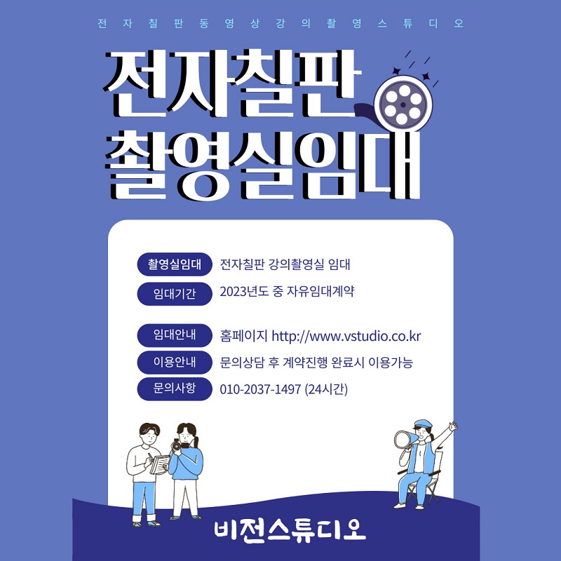 ★ 전자칠판 동영상강의 촬영실 임대 ★ 비전스튜디오 전자칠판 강의촬영실 임대합니다. 위 이미지를 보시면, 2023년도 연중 필요한 기간동안 강의촬영실 임대가능합니다. (월단위 계약) 전자칠판 강의촬영실 임대에 대해 궁금하신 분들께서는... 문의전화 (010-2037-1497) 대표 휴대폰에 전화하셔서 상담하시면 되겠습니다. 아래 전자칠판 강의촬영실 이용장비 및 월 임대비용에 대해 안내해드립니다. [사용장비안내] . 전자칠판 86인치 UHD 4K (판서프로그램 포함됨) . 소니 4K 캠코더 . 소니 양방향 무선마이크 . 노트북(전자칠판 연결용) . 전자칠판용 판서용 도구 . PPT포인터(페이지 넘김 도구) . 영상저장용 SD 카드(4K용) . 기타장비 구비 및 사용가능 [월임대,이용가격] . 전자칠판 3시..
